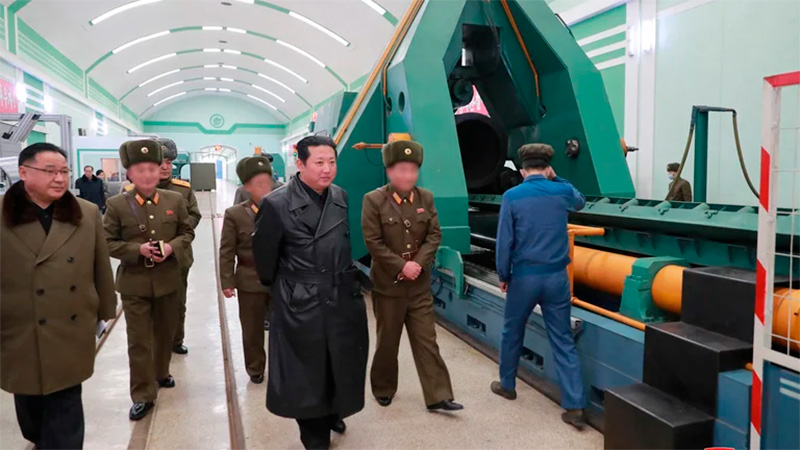 El viernes, los medios de comunicación estatales publicaron fotos en las que se veía a Kim con su habitual chaqueta de cuero negra con cinturón, rodeado de funcionarios uniformados -con sus rostros pixelados- inspeccionando una fábrica de municiones que produce “un importante sistema de armas”.