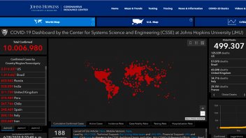 Los casos confirmados de coronavirus en todo el mundo superaron los 10 millones para alcanzar un total de 10.006.980 en la mañana de este domingo, según el Centro de Ciencia e Ingeniería de Sistemas de la Universidad Johns Hopkins. Por su parte, la entidad indicó que el total de muertos por la enfermedad subió a 499.307.