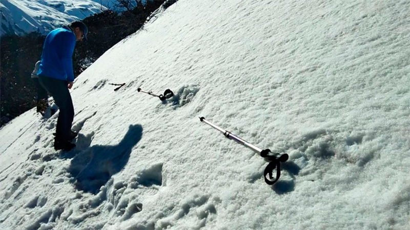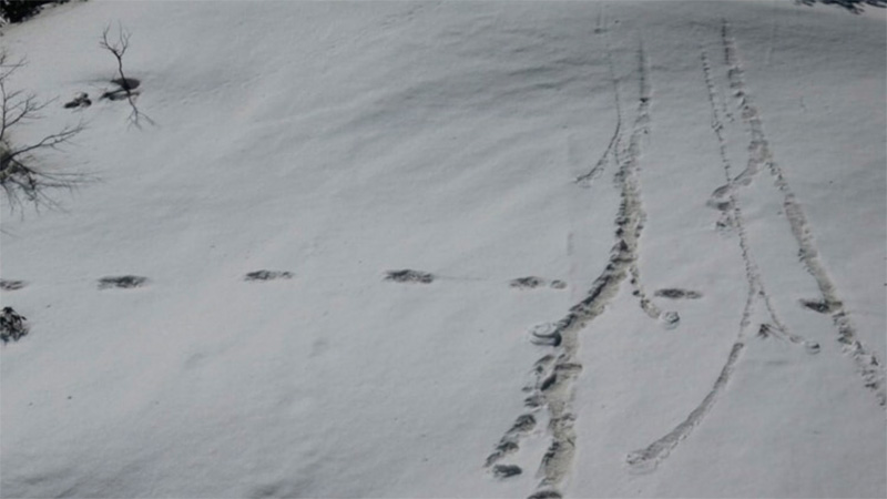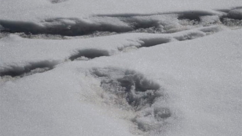 "Las huellas se agrandaron debido al fuerte sol y el viento en las alturas y al superponerse las patas traseras y delanteras da la impresión de una sola huella gigante", agregó.
