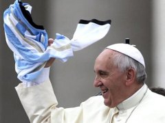 El Papa Francisco hace fuerza desde Roma para que gane la selección, hoy levantó los colores celeste y blanco en medio de la audiencia con fieles.