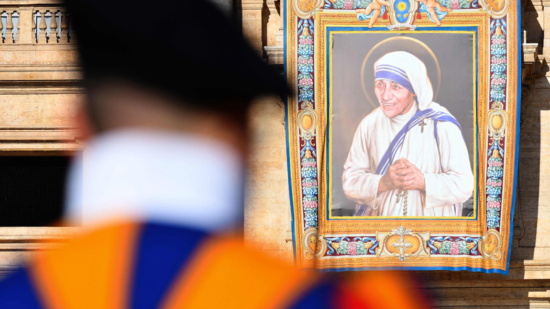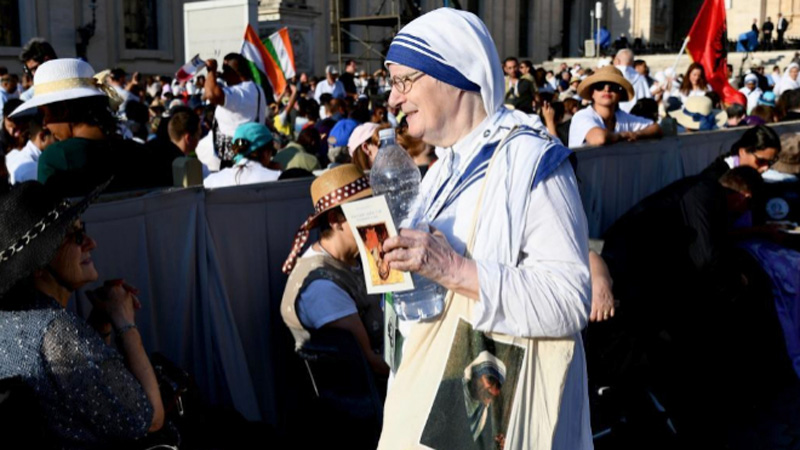 Una reliquia de la madre Teresa de Calcuta ha sido colocada junto al altar mayor del atrio de la Plaza de San Pedro, donde el Papa ha celebrado su canonización ante más de 100.000 fieles. La reliquia ha sido llevada al altar justo después de la proclamación. El relicario, realizado con madera traída de varias partes del mundo con forma de cruz, contiene una ampolla con la sangre de la madre Teresa y fue llevado al altar por dos hermanas de las Misioneras de la Caridad, la congregación que fundó la religiosa y que se caracteriza por sus saris blancos con ribetes azules, informa Efe.