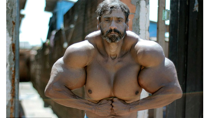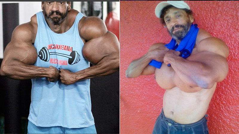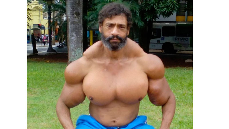 Valdir Segato, de 48 años, es un empleado de la construcción de la ciudad de San Pablo, Brasil, que se inyectó varias veces una sustancia compuesta por aceite y otros productos en sus músculos con el fin de agrandarlos. Le recomendaron dejar de hacerlo, pero se niega. Aumentó el tamaño de sus bíceps más de 25 centímetros.