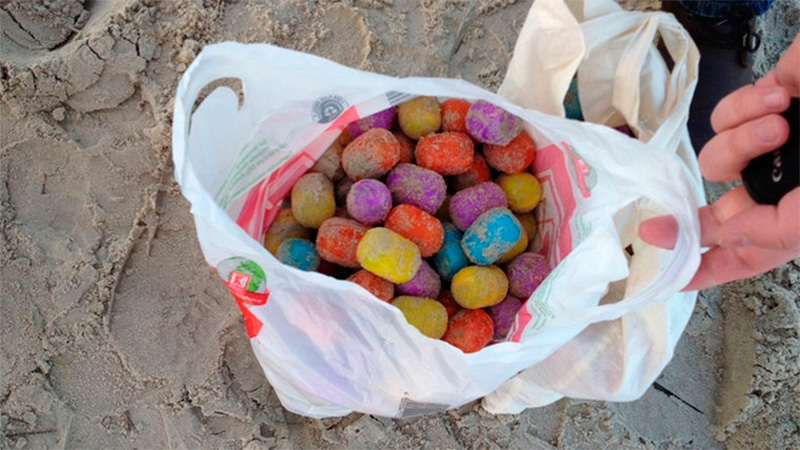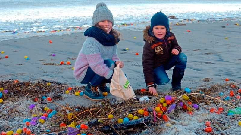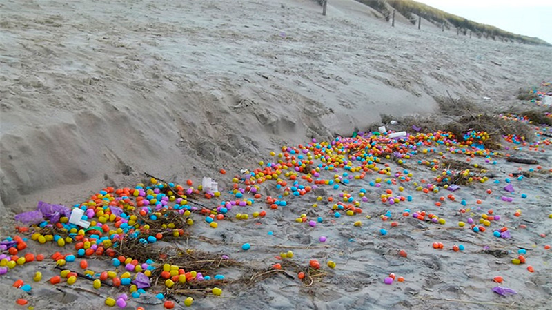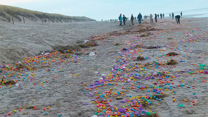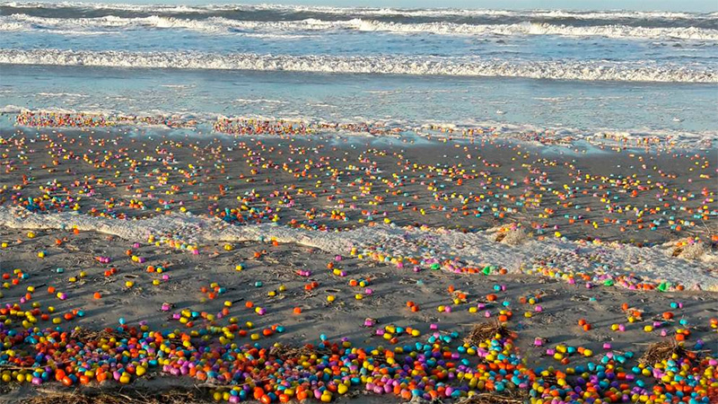 Un carguero que iba de China a Alemania perdió cinco contenedores de huevos en una tormenta, que terminaron en la playa de una isla del mar del Norte. De inmediato decenas de niños junto a sus padres acudieron para juntar las sorpresitas.