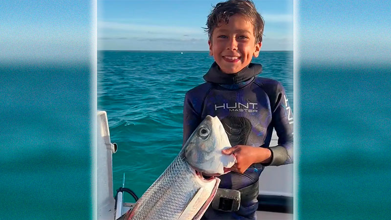 Las imágenes difundidas en las redes -con más de 1.7 millones de me gusta en TikTok- muestran cómo el niño esperaba, flotando al lado del barco, a que su padre se acercara con el celular para grabar el pez y, justo cuando lo enseña a la cámara, es sorprendido del lado izquierdo por el tiburón.