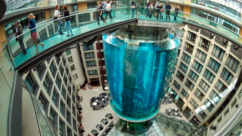 Se trata del AquaDom, el acuario independiente "más grande del mundo", que estaba ubicado en el interior del hotel Radisson Collection de la capital de Alemania y alojaba alrededor de 1.500 peces tropicales.