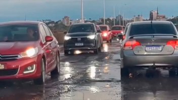 Un video muestra la complicación al tránsito para los automóviles, motos y vehículos que circulan por el paso fronterizo entre Argentina y Brasil. Se pueden observar los pozos y roturas que dificultan la circulación.