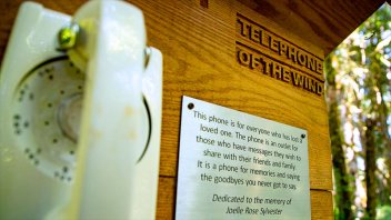 La placa dice: “Este teléfono es para todos los que alguna vez han perdido a un ser querido. El teléfono es una salida para quienes tienen mensajes que desean compartir con sus amigos y familiares que ya no están. Es un teléfono para recordar y para decir las despedidas que nunca pudiste decir”.