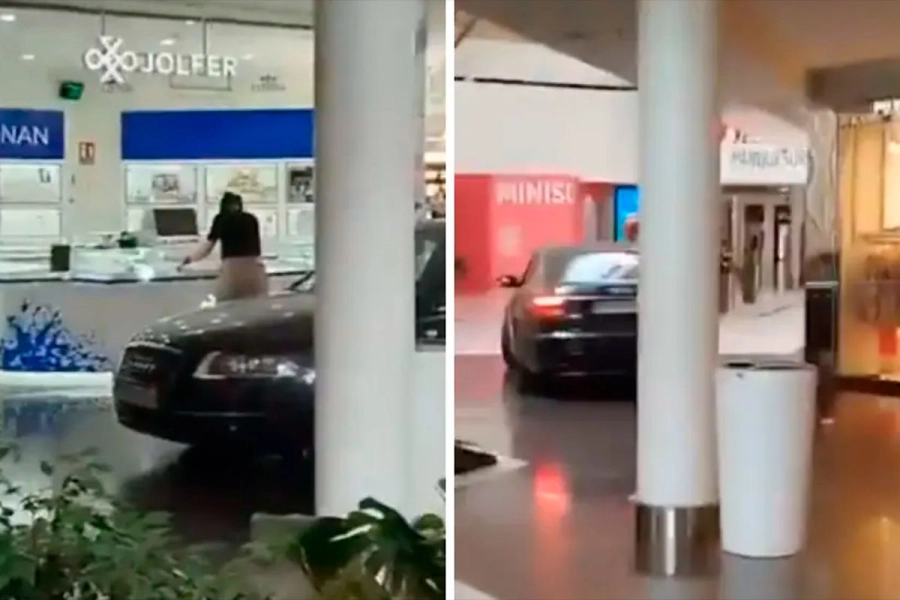 Una banda ingresó en auto a un shopping de Madrid, robó una joyería a mazazos y escapó a toda velocidad. El episodio ocurrió en un centro comercial de Madrid. Testigos grabaron la particular secuencia con sus celulares y las imágenes se viralizaron.