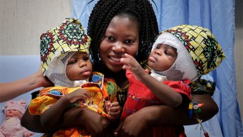 Luego, los cirujanos reconstruyeron la membrana que cubre los dos cerebros y recrearon el revestimiento de la piel sobre los nuevos cráneos. "Un mes después de la separación final, las gemelas están bien", agregó el hospital. En un video de una fiesta por el segundo cumpleaños de las siamesas, celebrado en el hospital, las niñas aparecen con la cabeza envuelta en vendas protectoras, gesticulando y agarrando el pastel.