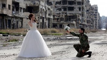 Según informa el periódico 'The Daily Mail', Nada Merhi, de 18 años, y Hassan Youssef de 27, utilizaron los escombros de una de las ciudades más destruidas del país, Homs, como escenario de su álbum de fotos de bodas.