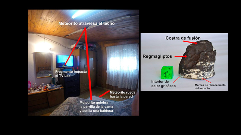 "Se trata del primer meteorito que cayó Uruguay y uno de los pocos casos registrados en que un meteorito atraviesa el techo de una casa. Existen menos de 15 casos a nivel mundial en los últimos 100 años'', agregó el informe.