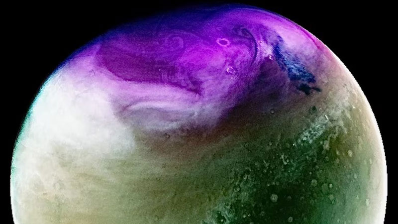 Esa gama de colores fue retratada por la misión MAVEN (Atmósfera de Marte y Evolución Volátil) de la NASA, que logró impresionantes vistas de Marte en dos imágenes ultravioleta tomadas en diferentes puntos a lo largo de la órbita de nuestro planeta vecino alrededor del Sol.
