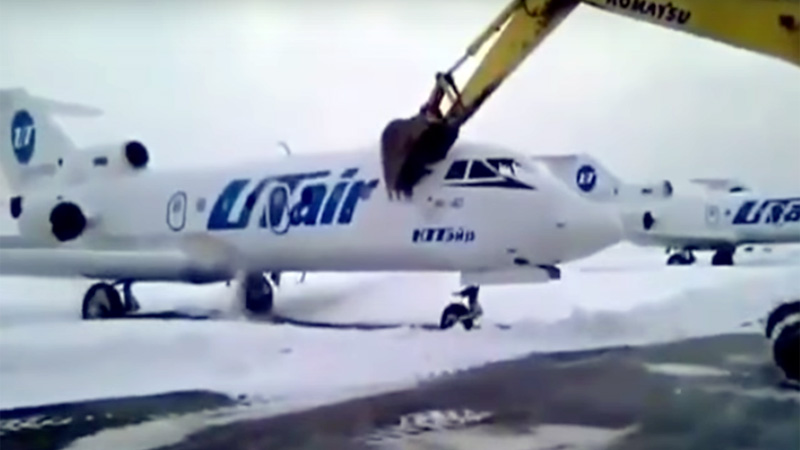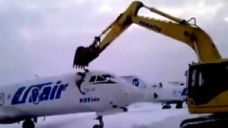 Tras enterarse de su despido, el empleado de un aeropuerto de Rusia decidió romper una aeronave con una pala mecánica y la filmación se viralizó en las redes sociales.