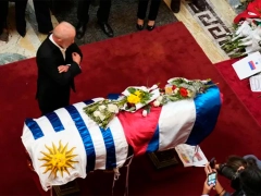 Lula se acercó al Palacio Legislativo, donde se lleva a cabo el velatorio, y rindió homenaje al exmandatario uruguayo con un sentido abrazo a su viuda, Lucía Topolansky, y un beso en la frente al féretro cubierto con las banderas de Uruguay y del Frente Amplio.