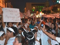 En las marchas se repartieron tamales y playeras (camisetas) entre los manifestantes.