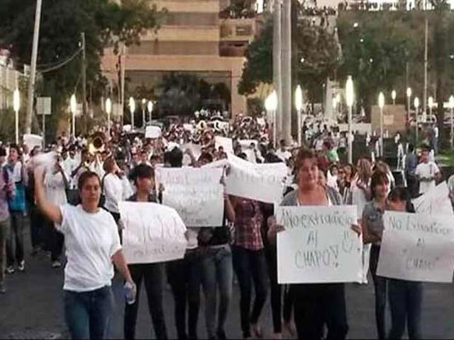 "Queremos libre al Chapo", "Con el Chapo había mayor seguridad", "No a la extradición del Chapo", "We love Chapo", "No queremos otra guerra", "Al Chapo se le quiere y se le respeta más que a muchos políticos", eran algunos lemas que se leían en las pancartas.