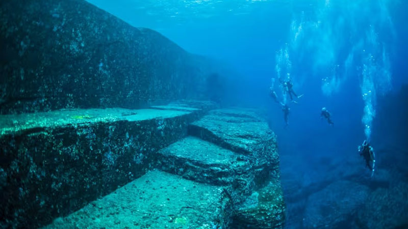 En 1987, un submarinista japonés que exploraba las aguas circundantes de las islas Ryukyu, al sur de las costas de Japón, quedó maravillado al encontrar, a 25 metros de profundidad, una enorme estructura rocosa con la particularidad de tener escalones perfectamente tallados. El buzo creyó haber encontrado parte de una ciudad que habría existido en aquel lugar miles de años atrás y que fue hundida por completo por un cataclismo natural.