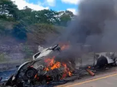 Once personas fallecieron tras choque fatal entre dos camionetas de Brasil. Un fatal accidente ocurrió este sábado en la ruta federal BR-101, a la altura de la ciudad de Mucurí, en el estado de Bahía. Un choque frontal entre dos vehículos, una camioneta Chevrolet S10 y un utilitario Fiat Dobló, dejó como saldo al menos 11 muertos, entre ellos dos niños, de dos y cuatro años, y una mujer embarazada. El impacto fue tan violento que ambos vehículos se incendiaron de inmediato, complicando las labores de rescate y dejando el tramo de la ruta completamente interrumpido durante varias horas.