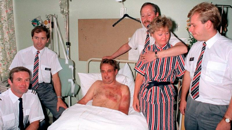 La sorprendente historia de Tim Lancaster, el piloto que fue succionado fuera del avión, tras la caída de su ventana y sobrevivió, porque lo agarraron de los pies. Estuvo 20 minutos fuera de la aeronave mientras un auxiliar lo sostenía.