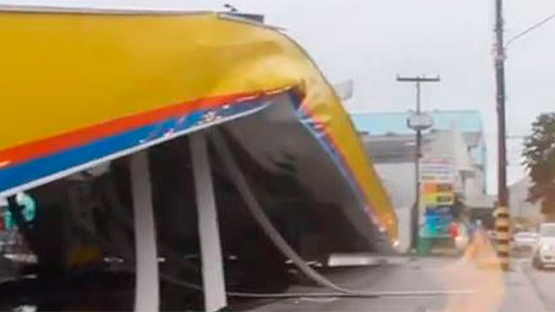 Poco antes de las 17 horas se formó una ola grande y golpeó vehículos y personas de pie en la playa de Turner bar. En Araranguá, municipio vecino, varios vehículos se vieron afectados por la fuerza del viento y el agua.