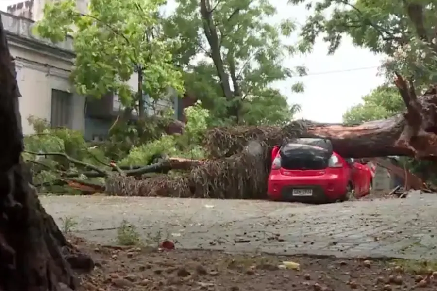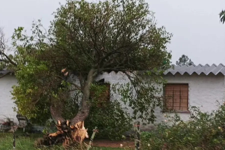 Fuertes vientos, voladuras de techos y hasta un auto destrozado por la caída de un árbol fue el resultado del fuerte temporal de Uruguay, que afectó principalmente al departamento de Paysandú.