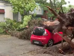 En la capital uruguaya Montevideo no hubo grandes afectaciones por el temporal, pero sí quedó registrada una imagen insólita: en el barrio céntrico La Aguada un auto quedó destrozado luego de que un árbol se le cayera encima en el mediodía del domingo.