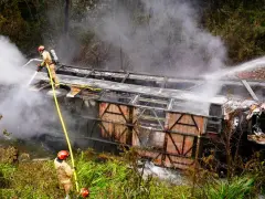 El siniestro ocurrió en la ruta 315, cerca de Cuenca. El vehículo se desbarrancó y fue consumido por las llamas. También hay 29 heridos, varios con lesiones de gravedad.