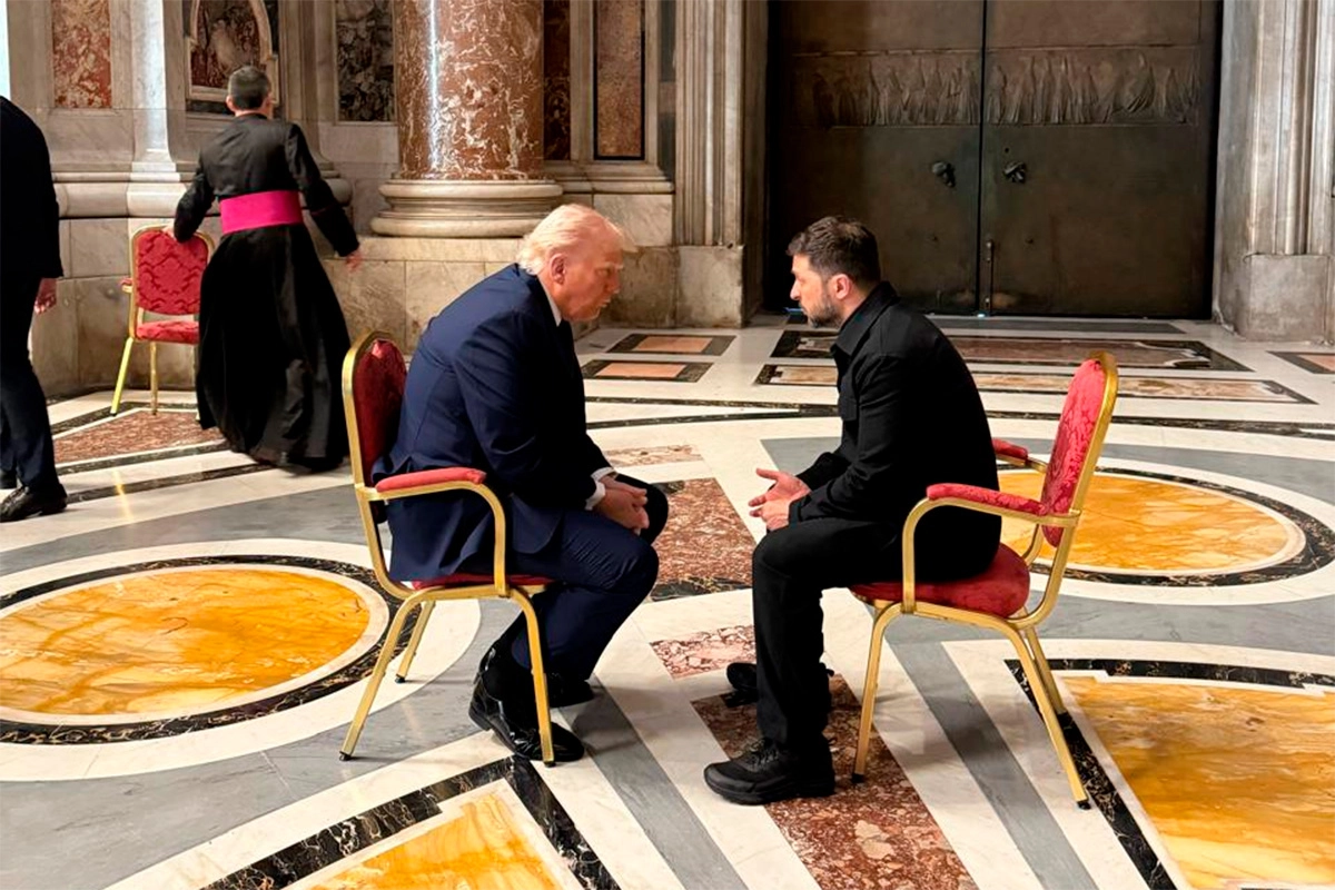 En un contexto de intensa actividad diplomática, el presidente de Estados Unidos, Donald Trump, y su homólogo ucraniano, Volodimir Zelenski, mantuvieron este sábado una breve pero “muy productiva” reunión privada en Roma, al margen de la ceremonia fúnebre del Papa Francisco en la basílica de San Pedro. El encuentro fue confirmado tanto por la Casa Blanca como por la oficina presidencial de Ucrania.