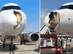 Así quedó el avión tras el impacto con el pájaro