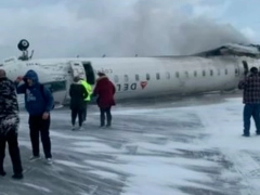 Un avión que partió de Minnéapolis con destino a Toronto, en Canadá, quedó dado vuelta producto de la maniobra de aterrizaje en la pista llena de nieve. Se habrían evacuado a los pasajeros.