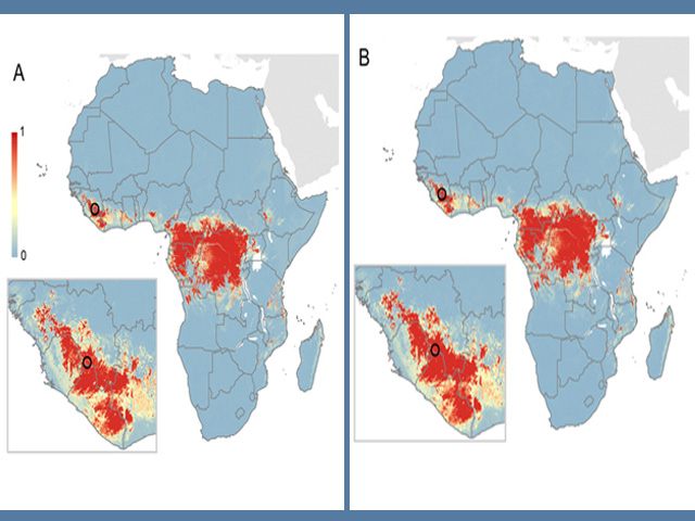 Crearon un nuevo mapa de los lugares de mayor riesgo ante el brote de ébola y dijeron que las regiones que probablemente albergan animales con el virus sean más de lo que se temía previamente, particularmente en África Occidental.