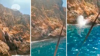 Un turista holandés murió tras saltar de un acantilado y golpear contra las piedras. Su pareja estaba grabando la escena con su celular desde una embarcación que habían alquilado para navegar por la zona. Imágenes sensibles.