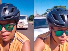 Una ciclista de 45 años fue embestida por una camioneta en una avenida de Campo Grande, Brasil. Grababa su recorrido con el celular cuando, tras discutir con un camionero, fue atropellada y sufrió fracturas.