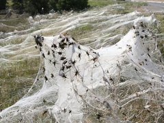 ¿Cómo hacen para viajar? Tejen sus pequeñas bolsas y el viento las va llevando. El fenómeno se conoce como "balloning" o también como "kitting". Y se la considera una migración masiva incluso a kilómetros de distancia. El asunto es que para los vecinos llueven arañas, en copos. Y esos copos empiezan a cubrir los campos, por eso los habitantes los llaman "cabellos de angel" y al tiempo, campos y árboles empiezan a ser blancos, cubiertos de telarañas.