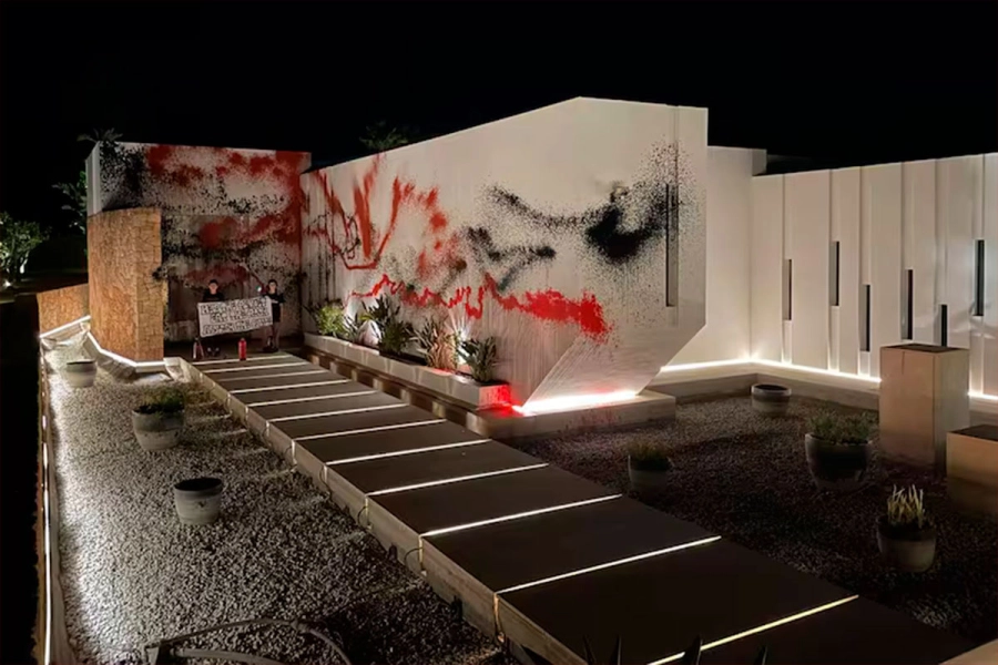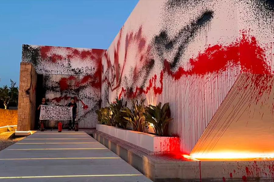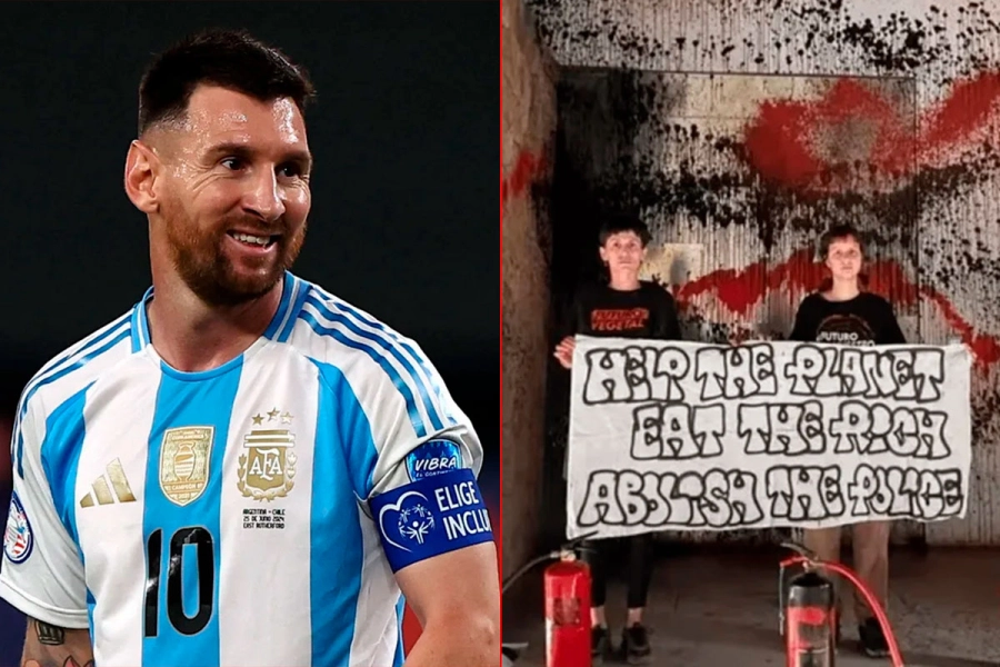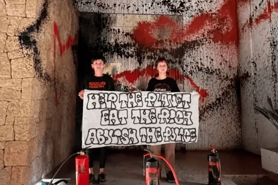 Se trata de integrantes de la agrupación Futuro Vegetal, quienes lograron ingresar a la propiedad y dejaron el siguiente mensaje: “Help the Planet - Eat the Rich - Abolish the Police”' (Ayudar al planeta, comerse a los ricos y abolir la policía).