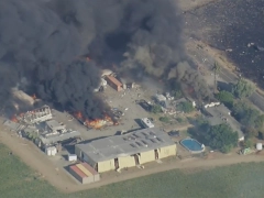 El equipo de noticias vespertinas de KCRA 3, un programa de NBC News, relataba el estado de situación mientras se observaban algunas llamas y denso humo gris que salía sin parar del depósito, cuando de pronto se produjo un estruendo y una bola de fuego que quedó registrada ante las cámaras.