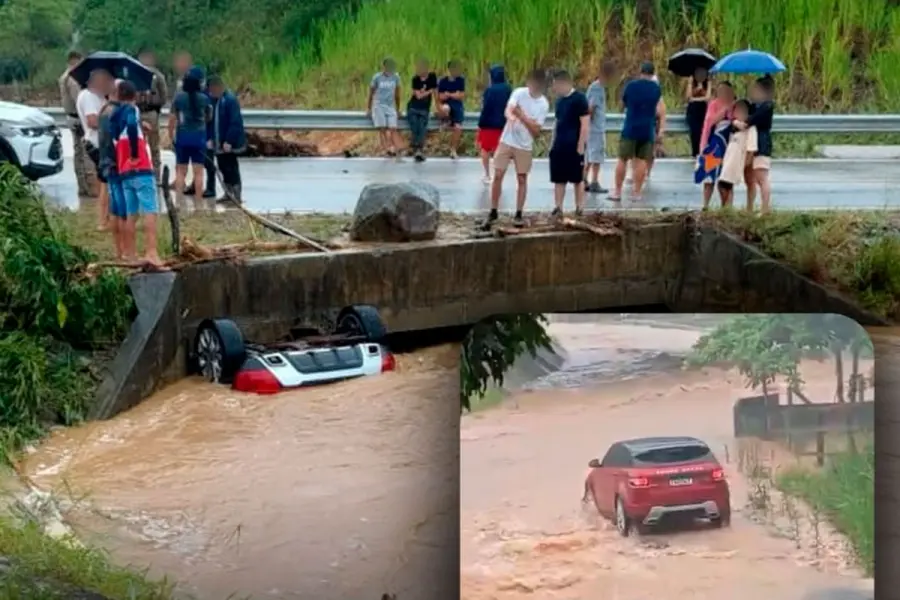 Según confirmó la Policía Militar, el automóvil -un Land Rover- fue arrastrado tras intentar atravesar una zona completamente inundada en la “Rua Alaor da Silveira”, en el barrio “São Sebastião”.
