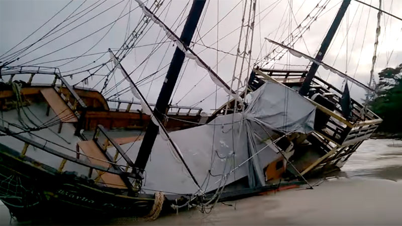 Video: El Barco Pirata de excursiones en el sur de Brasil encalló en la costa