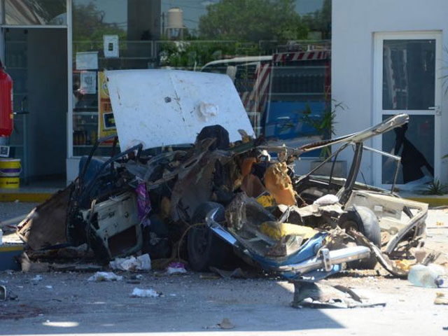 La explosión hizo que parte del baúl del auto perforara el techo de la playa y provocara un cráter en el piso de cemento.
