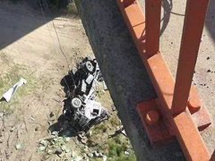 Por el impacto el acoplado del camión, que circulaba a gran velocidad, voló 35 metros y cayó a tierra. El chofer del camión se encuentra grave y fue trasladado al hospital local, en tanto que fallecieron una mujer y su hijo, que también ocupaban la cabina del vehículo.