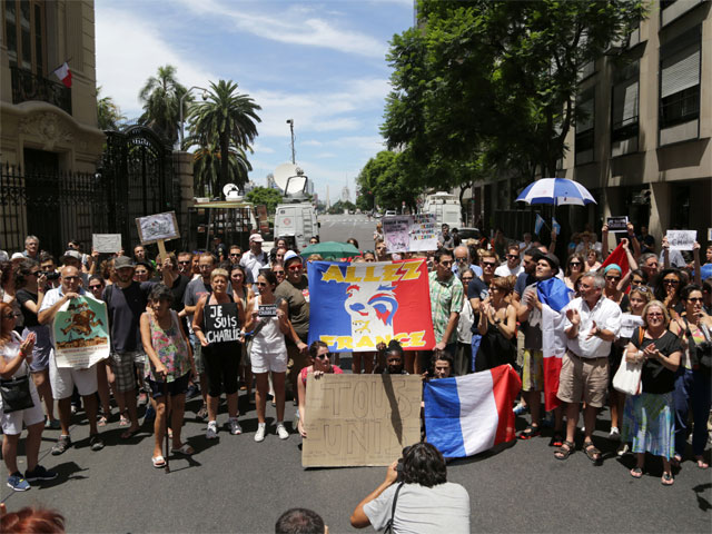 Ese día, decenas de personas se habían concentrado frente a la embajada de Francia en Buenos Aires para expresar su repudio al ataque terrorista.