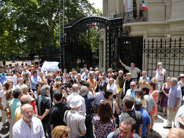 De la manifestación, realizada frente a la sede diplomática, la mansión Ortiz Basualdo, ubicada en la esquina de Arroyo y Cerrito, en el barrio porteño de Retiro, participaron el embajador francés,