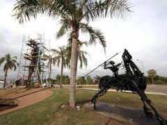 La escultura, que tiene 17 metros de altura y fue realizada con más de 15 toneladas de hierro reciclado por la agrupación "Cultura Vallese", será la primera en la capital provincial en reivindicar al joven combatiente guaraní, que llegó a la gobernación de la provincia de Corrientes en 1818.
