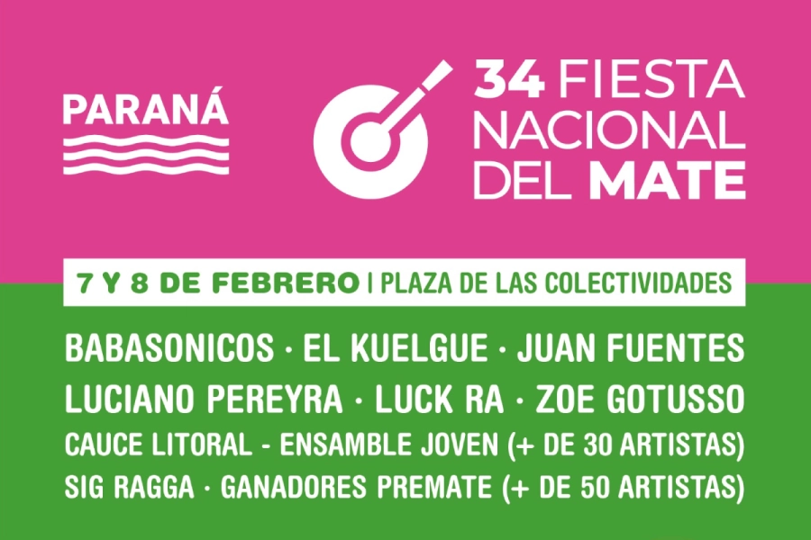 En el escenario mayor estarán Babasonicos, El Kuelgue, Juan Fuentes, Luciano Pereyra, Luck Ra y Zoe Gotusso, además de Cauce Litoral-Ensamble Joven y los ganadores del Premate. El evento se realizará el 7 y 8 de febrero en la Plaza de las Colectividades.