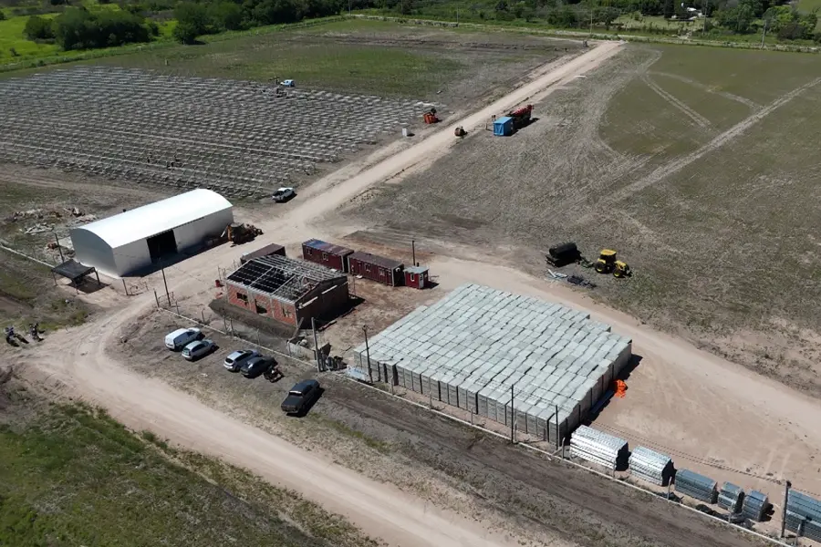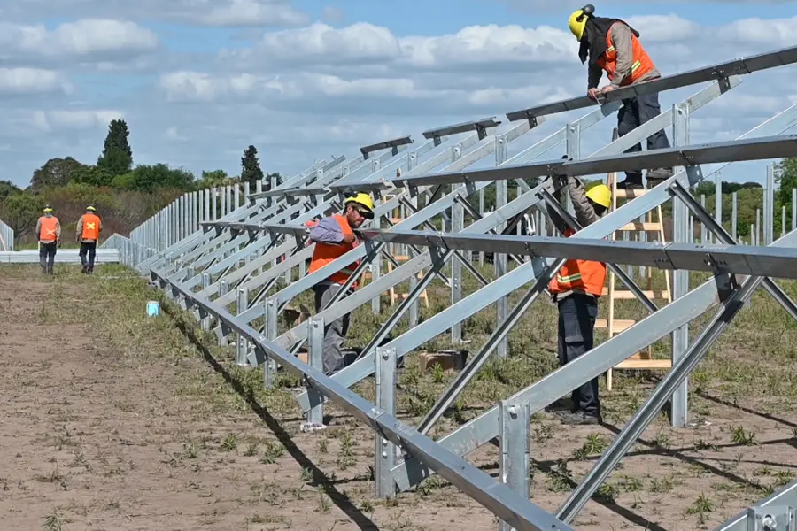 Se trabaja en el armado e instalación de las estructuras fotovoltaicas que sostienen los paneles solares, fijándolos de manera segura a una superficie y orientándolos para maximizar la captación de energía solar. Posteriormente, se colocarán los paneles y luego lo que respecta al tendido de cables y demás instalaciones que permitan la generación de energía.