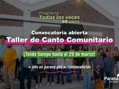 El Municipio de Paraná, a través del programa Todas las Voces, abrió la convocatoria al Taller de Canto Comunitario, en el marco de sus 30 años de trayectoria. La inscripción permanece abierta hasta el 29 de marzo.