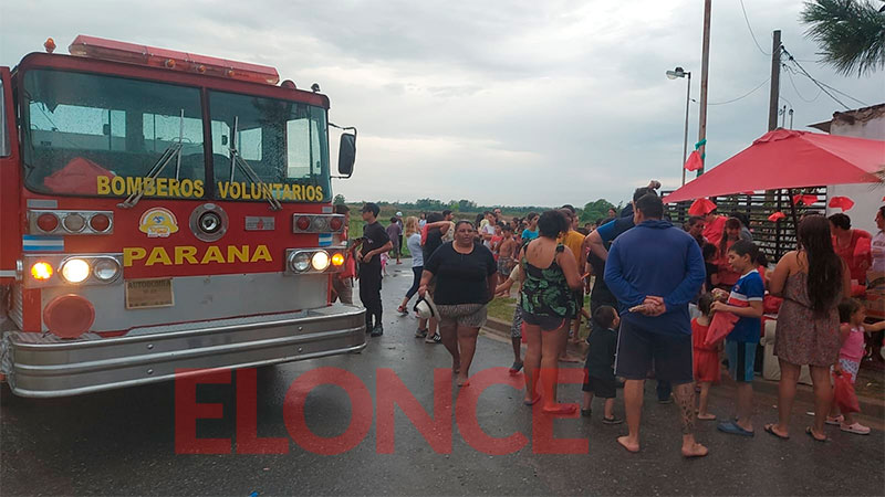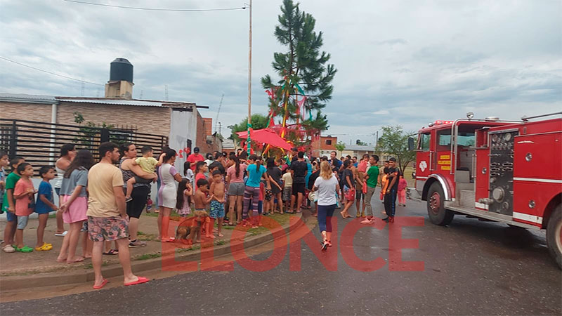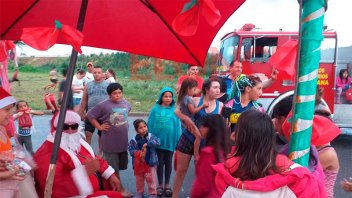 Con sirenas y música, un papá Noel, a bordo de un camión de bomberos, sorprendió a los niños del barrio 144 viviendas de Paraná. Allí les obsequió a los niños juguetes y golosinas, supo Elonce.