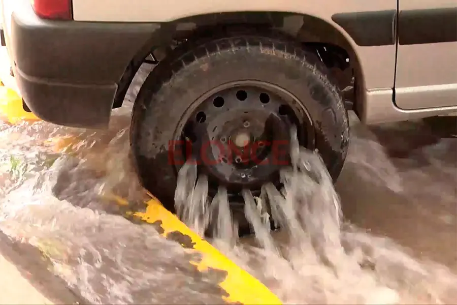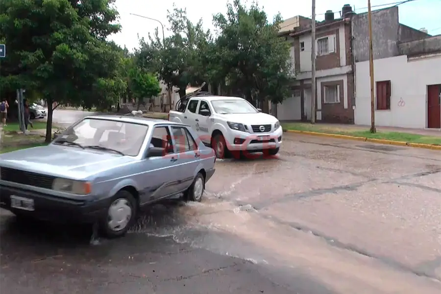 En la intersección de Dean J. Álvarez y Avenida Ramírez, se produjo un derrame de agua como parte de los trabajos de limpieza en la nueva cañería que mejorará el servicio en Paraná.