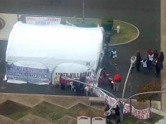 El gremio docente montó sobre Plaza Mansilla una carpa y permanecerán hasta que la legislatura entrerriana apruebe o rechace la iniciativa.