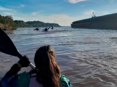 Una escuela de kayak y SUP alertó sobre una situación de peligro vivida por una flotilla al cruzarse con una barcaza de gran porte que navegaba muy cerca de la orilla. El canal de navegación se desplazó hacia la ribera entrerriana.